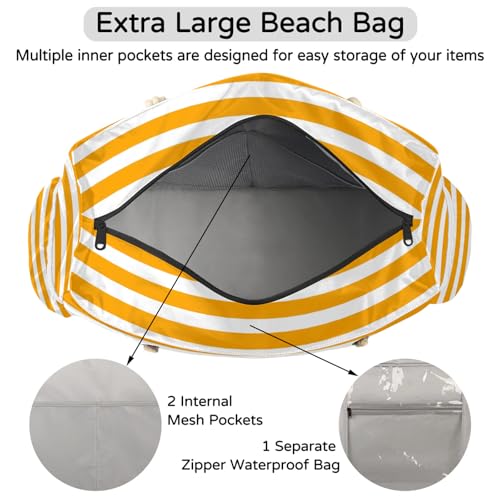 Orange Striped Tote Beach Bag for Women with Zipper Large Waterproof Sandproof Swim Pool Bag 3