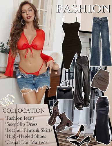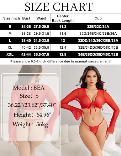 • 【Design】Tie Front design allows customizable tightness for a perfect fit.Slightly flared long sleeves add a graceful and flowing look.Slim-fit cropped style and mesh see-through effect perfectly show your body curves