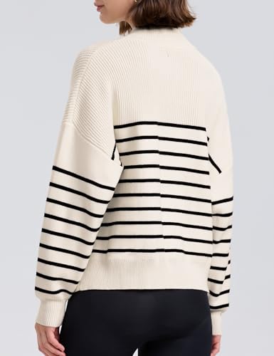 PrettyGuide Women's Long Sleeve Quarter Zip Oversized Pullover Striped Sweater Casual Mock Neck Loose Ribbed Knit Tops 6