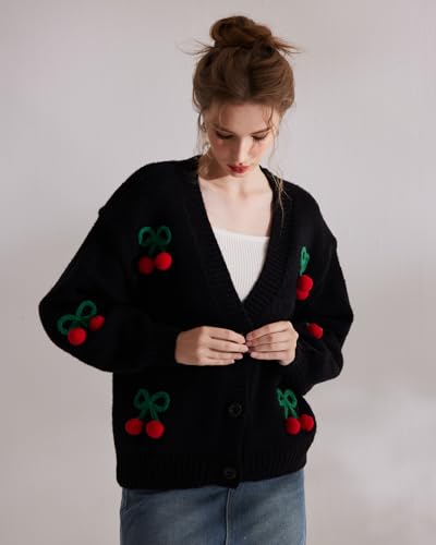 More information about Cardigan Sweaters for Women Long Sleeve V-Neck Button Knit 3D Cherry Y2k Surcoat