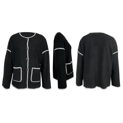 • Design:With a classic black color, this open front long sleeve knitwear has a timeless, elegant appearance.Womens trendy solid outerwear features corduroy, a round neckline, and a button-front closure, making it a flexible addition to your wardrobe.