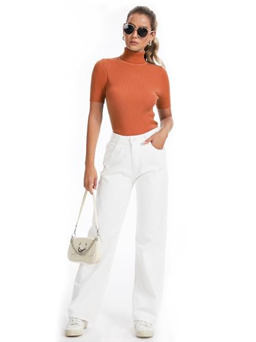 Women's Fall Short Sleeve Sweater Turtleneck Pullover Tops Winter Basic Ribbed Knit Slim Fitted Casual Shirts 6
