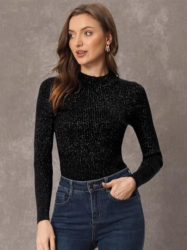 HOT ! Allegra K Women's Long Sleeve Glitter Tops Mock Neck Ribbed Knit Top Slim Fit Basic Pullover Sweater Top