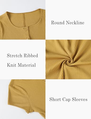 Dqbeng Womens Summer Cardigans Cap Sleeve Ribbed Button up Shirts Fitted Basic Going Out Tops 5