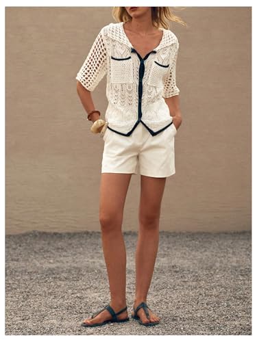 More information about SHENHE Women's Crochet Short Sleeve Button Down Cardigan Hollow Out Lightweight Summer Sweater