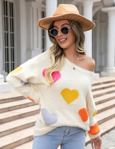 HOT ! Wyeysyt Valentine Heart Sweater for Women Knit Pullover Sweaters Long Sleeve Crew Neck Casual Kawaii Sweaters