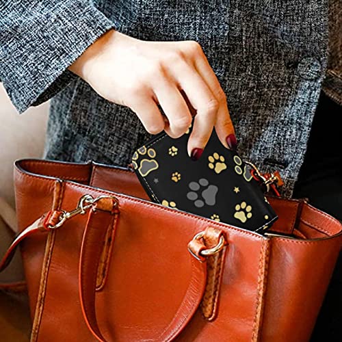 HOT ! OTVEE Gold Dog Paw Print Credit Card Wallet, Microfiber Leather Zipper RFID Card Case Holder for Women