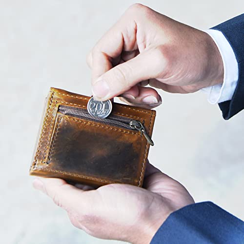 HOT ! Jajmo Legacy Vintage Full Grain Leather Trifold Wallet with Zipper Pocket, Card holder for men, Compact Wallet Bifold Wallet