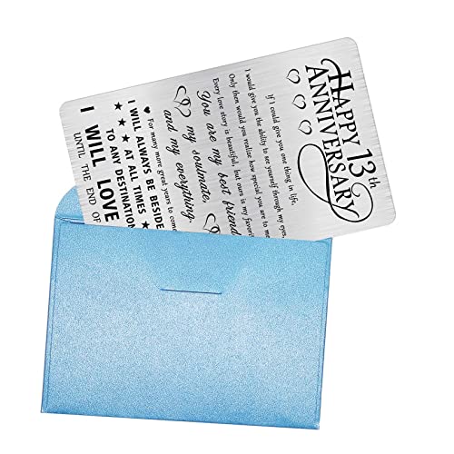 Alotozo 13th Anniversary Card Gifts for Him Husband Her, Happy 13 Years Wedding Anniversary Engraved Wallet Card Decorations for Boyfriend Wife Men 6