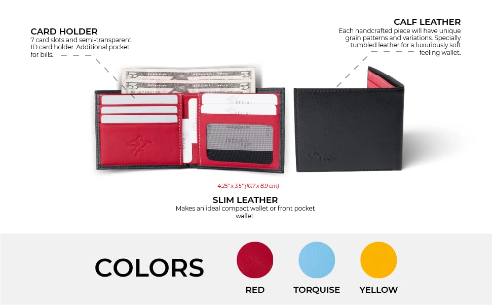 • LUXURIOUS MATERIAL: Indulge in the unmatched luxury of the PEGAI Standard Leather Bifold Men's Wallet, meticulously handcrafted with a combination of full-grain buffalo leather for the exterior and top-grain goat leather for the interior.