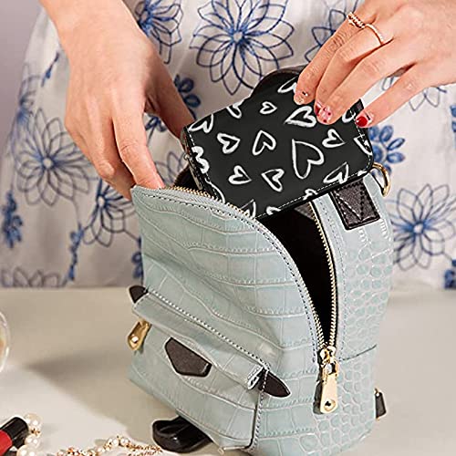 OTVEE Black White Hearts RFID Credit Card Wallet, Microfiber Leather Zipper Card Case Holder for Women 5