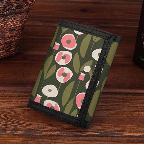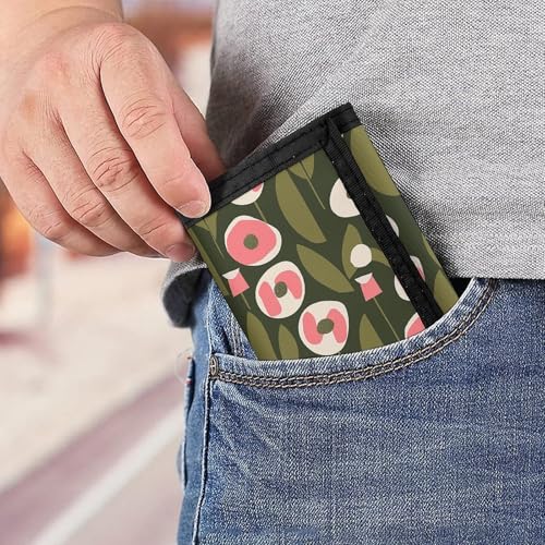 HOT ! Olive Green Flowers Trifold Wallet for Men - Money Clip Slim Wallets with Multiple Card Slots Minimalist Small Front Pocket Wallet for Everyday Carry