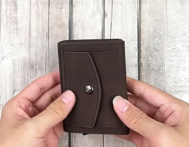 HOT ! Vintage Mens Genuine Leather Wallet AirTag Holder RFID Blocking Minimalist Card Holder Light Brown (Coffee)