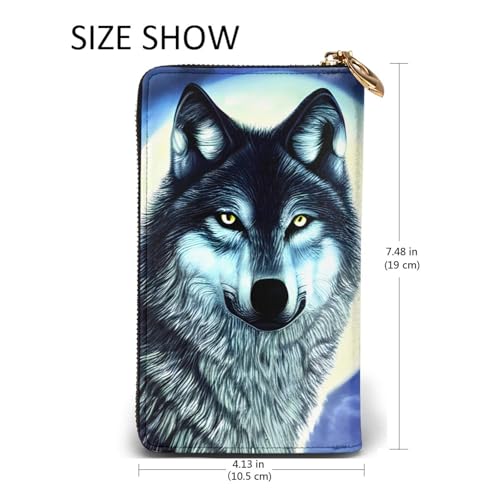 HOT ! wolf under moon Leather Long Wallet, 12 Credit Card Slots, 3 Cash Slots, Coin Compartment, Unisex