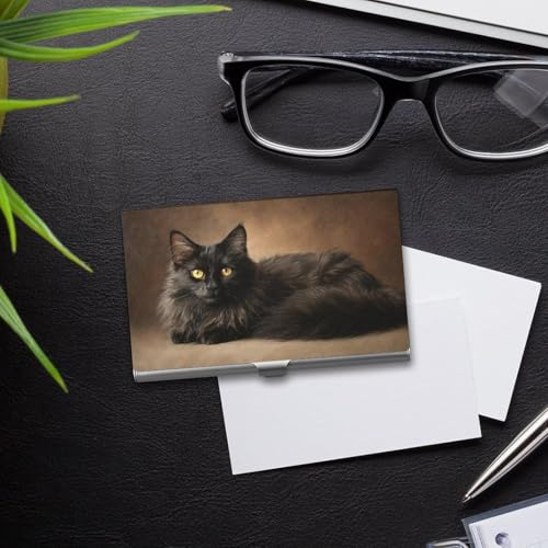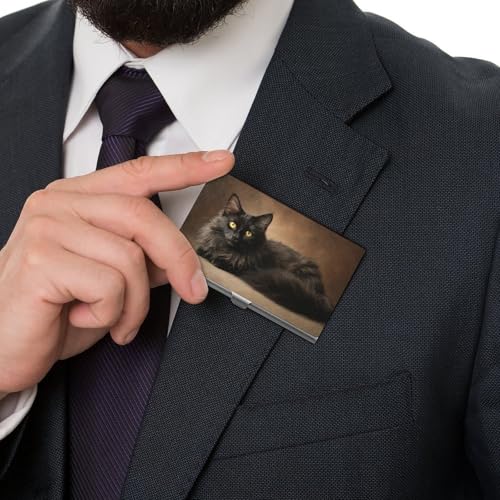 Black Cat with Yellow Eyes Vintage Business Card Holder Pocket Slim Portable Metal Business Card Case 7
