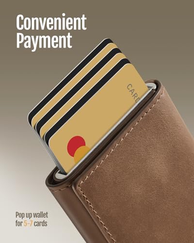HOT ! YESIIW Men's Leather Wallet with Coin Compartment & RFID Protection, Magnetic Slim Wallets for Men, Genuine Leather Wallet for 9 Credit Cards, ID Window, Brown