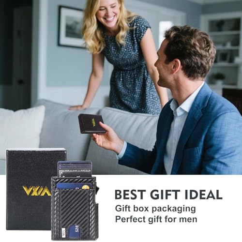 WXM Wallet for Men Pop Up Card Holder ID Window RFID Slim Wallet with Money Clip for 10-15 Cards Stretchable Credit Card Slot Magnetic Closure Compact Metal with Gift Box(Carbon Black) 6