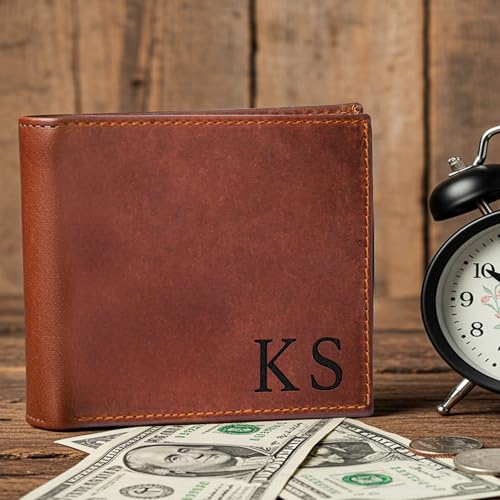 Personalized Leather Wallet for Men, Custom Monogram Gift Wallet for Mens, Birthday Present for Dad, Son, Grandfather, Boyfriend, Father's Day, Wedding Anniversary, Birthday, Graduation, Christmas 2