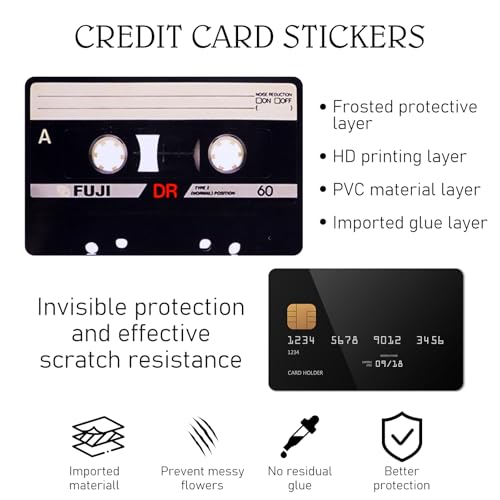 • 【Updated Material】The credit card sticker deisgned with PVC plastic materialthey are ultra-thin and easy to stick and removable. Additionally, our debit cardsticker are produced with waterproof matte finish and proof scratch card skins. Not be faded and keep new for a long time, offers protection against scratchesand wear.