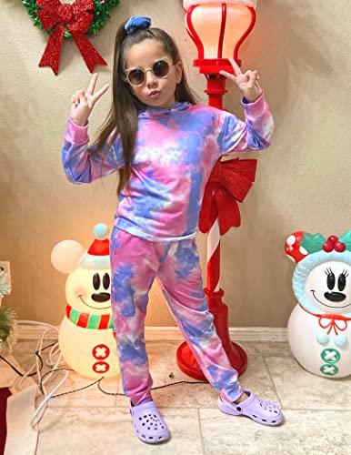 Arshiner Girl's 2 Piece Tie-dye Pullover Hooded Sweatshirt Set Sweatsuits and Sweatpants 6