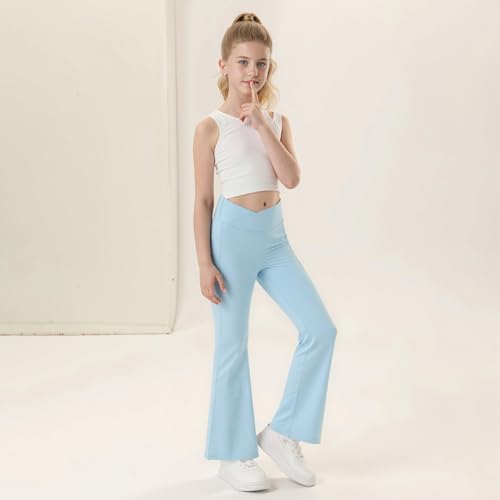 • Girls Crossover Pants: Our girls leggings used boot cut design, wide bell bottom leg with the V cross high-waisted design, which can easily fit for any figure