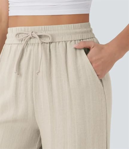 Women Wide Leg Casual Beach Pants Cotton Linen Summer Lounge Pants Travel Work Trousers with Pockets 7