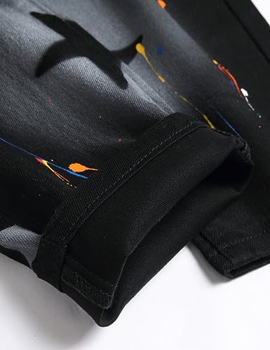 HOT ! Men Star Painted Black Stretch Denim Slim Straight Jeans