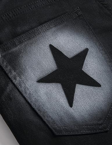 Men Star Painted Black Stretch Denim Slim Straight Jeans 5