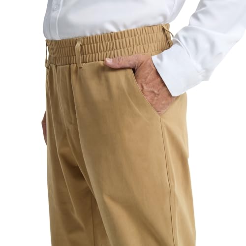 LETAOTAO Mens Elastic Waist Dress Pants - Cotton Twill Stretch Waist Pull On Slacks with Magnetic Button Fly for Seniors 6