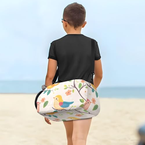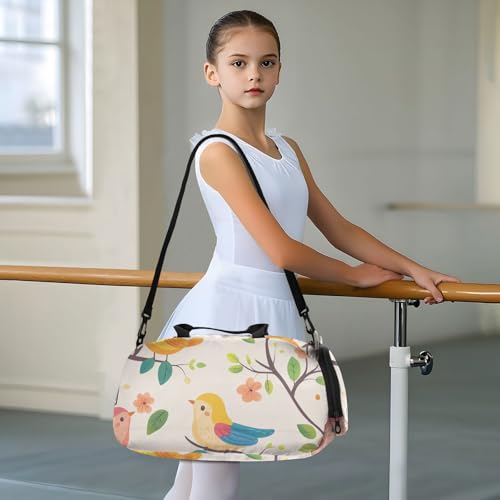 Cartoon Birds Duffle Bag for Girl, Sports Duffle Gym Bags with Shoe Compartment, Personalized Overnight Bag Travel Weekender for Kids 7
