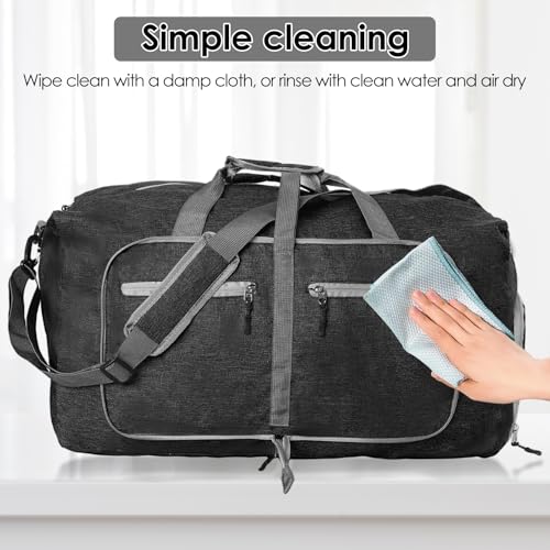 Duffle Bag for Travelling, 65L Travel Duffle Bag with Shoe Compartment, Waterproof Lightweight Foldable Travel Weekender Bags for Airplane Travelling Gym, Black 7