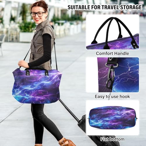 HOT ! Weekender Bags Travel Duffel Gym Bag Blue Purple Cross Lightning Carry on Overnight Tote Bag with Toiletry Bag for Airplane Travel Trip Gym Yoga