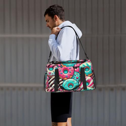 40l Gym Travel Duffel Bag Donut Chocolate Blue Mint Carry-On Workout Overnight Backpack 5