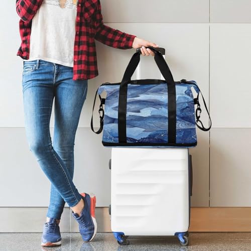Blue Fish Travel Duffel Bag for Women Men Gym Bag with Shoe Compartment Wet Pocket Carry On Weekender Overnight Bags for Travel Weekend Getaway 2