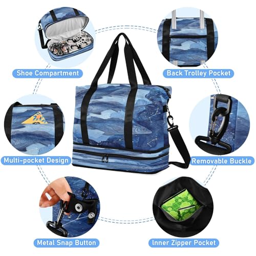Blue Fish Travel Duffel Bag for Women Men Gym Bag with Shoe Compartment Wet Pocket Carry On Weekender Overnight Bags for Travel Weekend Getaway 5