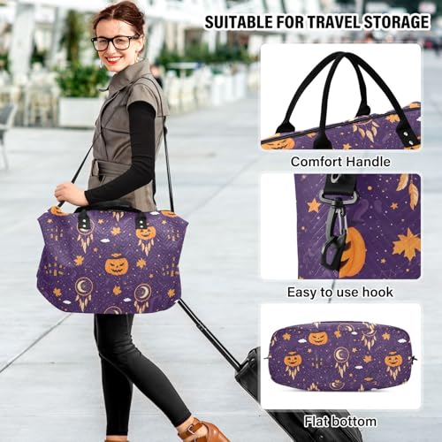 HOT ! Halloween Pumpkins Castle Travel Duffel Bag for Men Women with Makeup Bag Weekend Overnight Carry On Bags for Airline Under Seat Travel