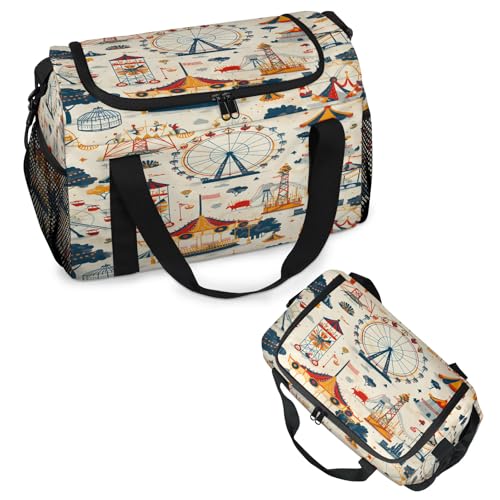 More information about Cartoon Amusement Park Pictures Travel Duffle Bag - Waterproof weekend luggage bag, men's sports and fitness bag, delivery hospital storage bag, overnight luggage bag with pull rod cover