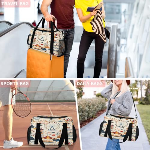 Cartoon Amusement Park Pictures Travel Duffle Bag - Waterproof weekend luggage bag, men's sports and fitness bag, delivery hospital storage bag, overnight luggage bag with pull rod cover 5
