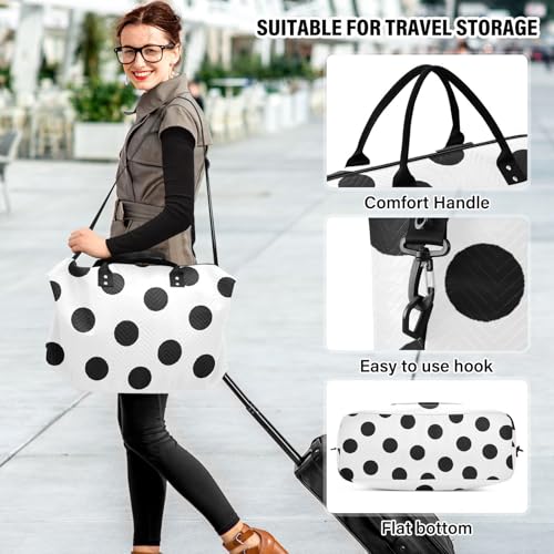 Cute Polka Dots Black White Travel Duffel Bag, Shoulder Weekender Overnight Bags - Large Gym Bag with Wet Pocket 6