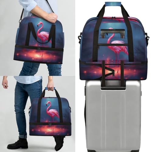 Large Weekender Overnight Bags Animal Flamingo Travel Duffel Bag for Women Men Gym Bag With Shoe Compartment Foldie Travel Tote Bag Carry On Personal Item Bag for Travel Gym Sports 1