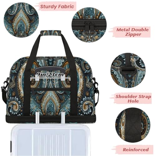 HOT ! Large Weekender Overnight Bags Travel Duffel Bag for Women Men Ethnic Texture Solemn Gym Bag With Shoe Compartment Foldie Travel Tote Bag Carry On Personal Item Bag for Travel Gym Sports