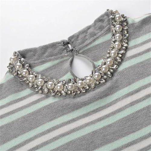 Women’s Elegant Pullover Short-Sleeve Sweater Pearls Beading Striped Top 5