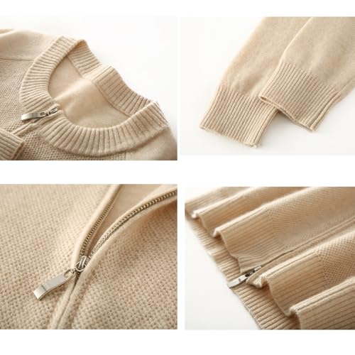 Women’s Cashmere Blend Merino Wool Crew Neck Knit Cardigan Sweater Long Sleeve Full Zip Outwear Sweatshirts Jacket 4