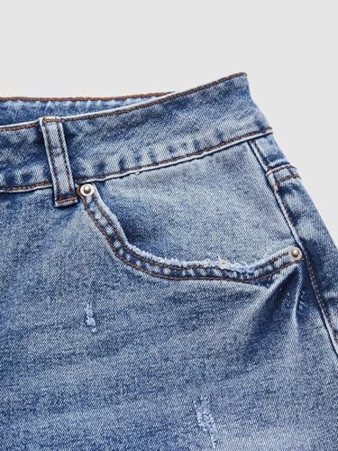 Flamingals Straight Leg Jeans for Women Boyfriend Mid Rise Roll Hem Wash Cropped Denim Pants Without Belt 6