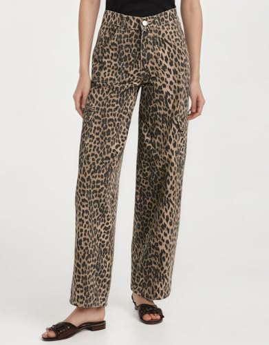 Kedera Womens Leopard Cargo Pants Straight Leg Cheetah Print Jeans Wide Leg Y2K Barrel Baggy Boyfriend Jeans with Pockets 6