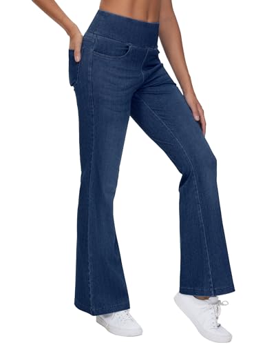 HOT ! THE GYM PEOPLE Women's Tummy Control Bell Bottom Jeans High Waisted Wide Leg Flare Pants Jeggings with Pockets
