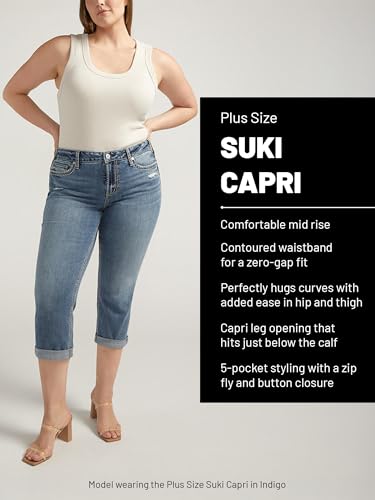 Silver Jeans Co. Women's Plus Size Suki Mid Rise Curvy Fit Capri Jeans 6