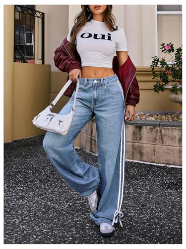 More information about GORGLITTER Women's Y2k Wide Leg Jeans Cute Bow Stripe Side Baggy Trendy 2025 Denim Pants with Pockets