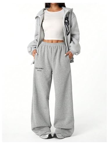 HOT ! GORGLITTER Girl's Graphic Wide Leg Sweatpants Baggy Hip Pop Elastic Waist Y2K Pants Streetwear