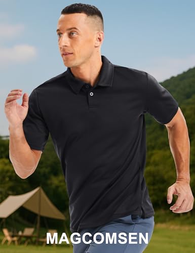 MAGCOMSEN Men's Polo Shirts Short Sleeve Collared Performance Dry Fit Breathable Golf Athletic Casual 1